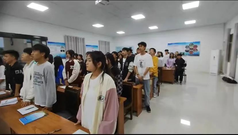 第一項(xiàng):全體起立,奏唱國(guó)歌、放共青團(tuán)團(tuán)歌