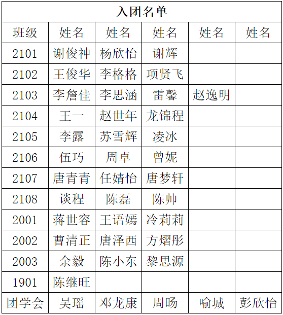 第二項(xiàng):由副校長(zhǎng)胥光華宣布此次儀式的新團(tuán)員名單。此次入團(tuán)共有40名同學(xué)被光榮地批準(zhǔn)加入共青團(tuán)