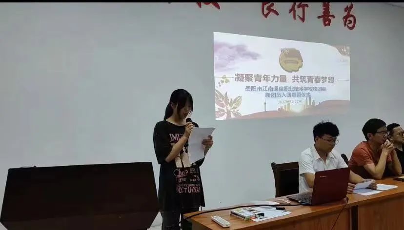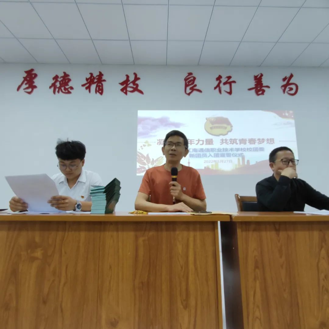 5月27日晚自習(xí),我校在會(huì)議室舉行“凝聚青年力量,共筑青春夢(mèng)想”岳陽(yáng)市江南通信職業(yè)技術(shù)學(xué)校2022年新團(tuán)員入團(tuán)儀式,團(tuán)委書(shū)記谷祥錦主持入團(tuán)儀式并代表學(xué)校向新團(tuán)員表示熱烈的祝賀和誠(chéng)的歡迎,祝賀你們從此成為一名光榮的中國(guó)共產(chǎn)主義青年團(tuán)的團(tuán)員,你們的加入使我們學(xué)校團(tuán)組織壯大了力量,為我們團(tuán)組織輸入了新鮮血液,注入了新的活力。
